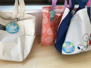 I Like Me!を始めた年に、五年生だった女の子の生徒さんがデザインをしてくれた缶バッジを作りました。みんな教室に通って来るときのバッグにつけています。